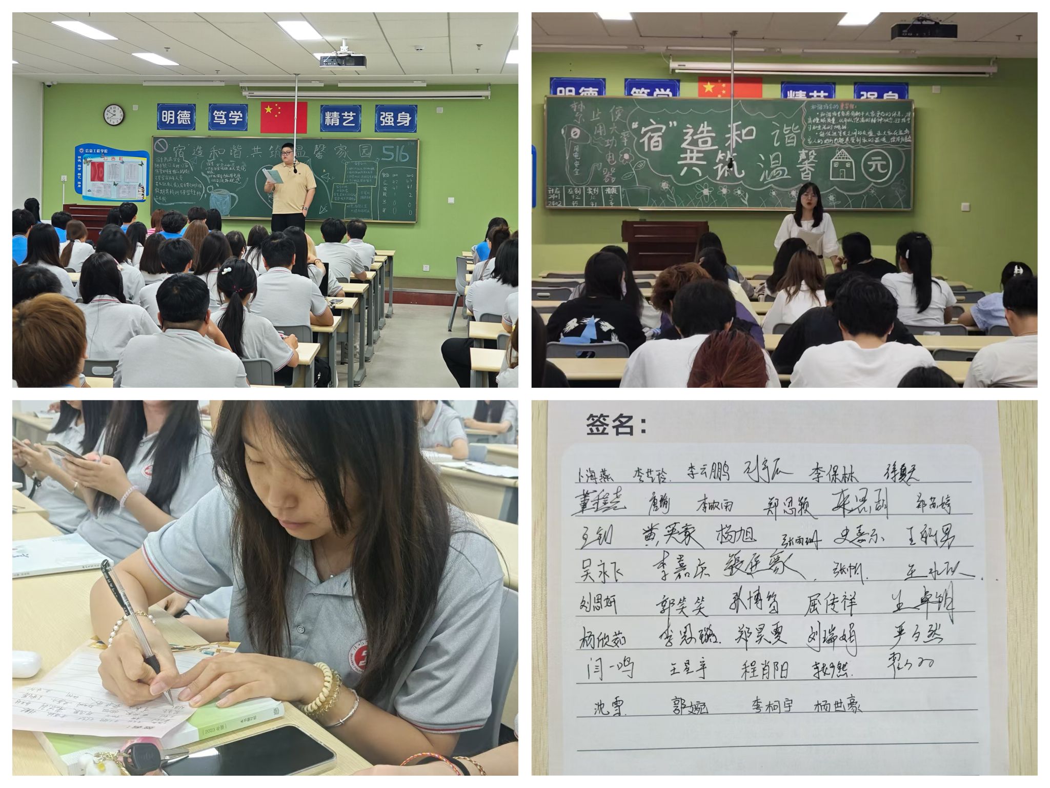 班会上,各辅导员、班主任围绕宿舍安全、卫生管理、人际关系等方面进行了详细讲解、强调了遵守宿舍规章制度的重要性,并呼吁同学们从自身做起,互相理解、包容,共同维护良好的宿舍氛围。随后,同学们共同观看了宿舍文明建设主题视频,通过生动的画面和实例,同学们深刻认识到文明宿舍对学习生活的重要性,并从中汲取了改进自身宿舍环境的灵感。最后,全体同学共同在“一站式”社区文明宿舍倡议书上签字,承诺从自身做起,以实际行动履行倡议内容,让宿舍成为学习生活的温暖港湾。
