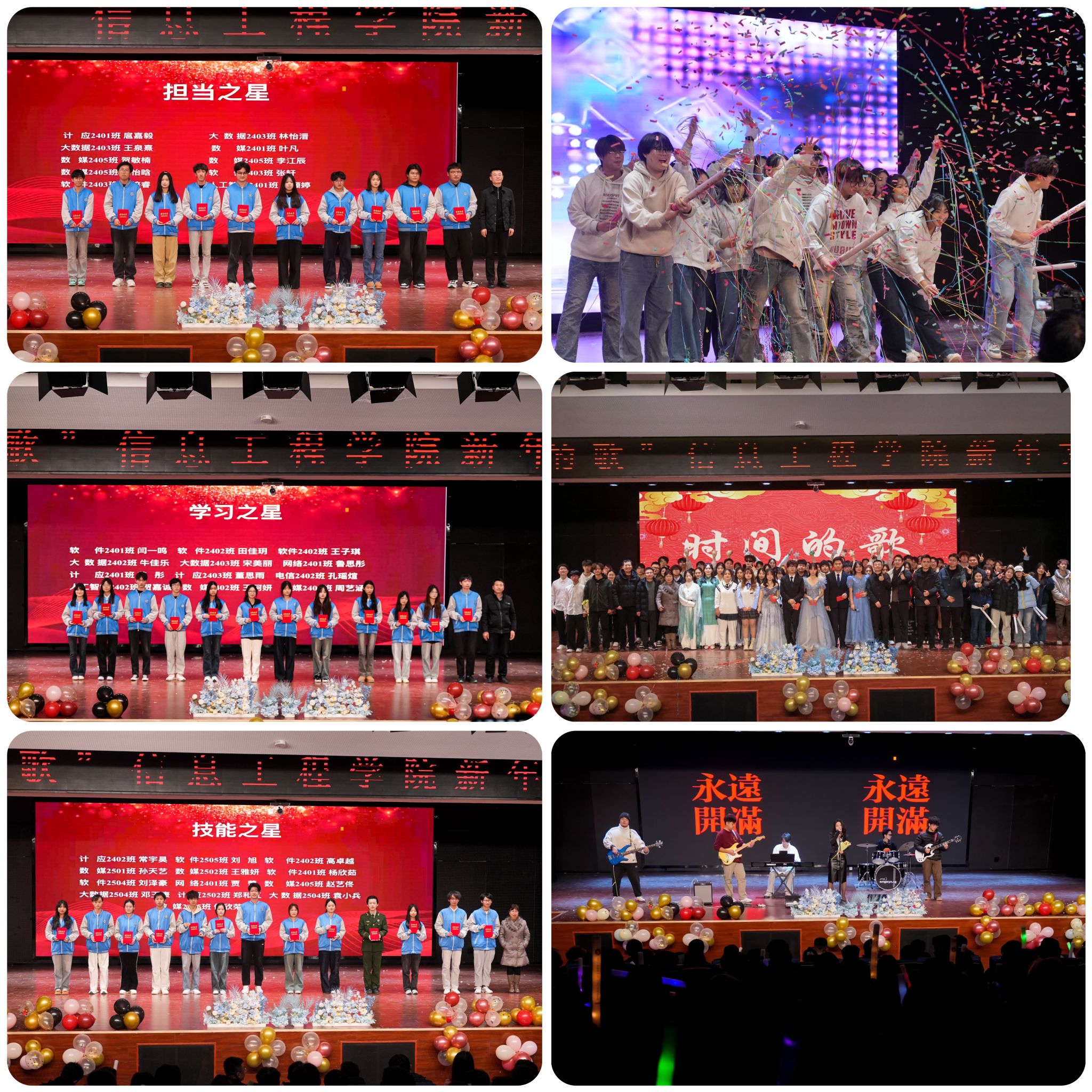 本次晚会历时一个多月精心筹备,最终为观众呈现了一场高质量、正能量、充满时代气息的视听盛宴,赢得了现场及线上观众的一致好评。整场演出不仅展现了信息工程学院师生的艺术才华与青春风采,更体现出学子们珍惜时光、脚踏实地、勇于追梦的精神气质。此次活动进一步丰富了校园文化生活,增强了学院的凝聚力与向心力,为营造和谐、奋发、向上的校园文化氛围注入了新的活力。
