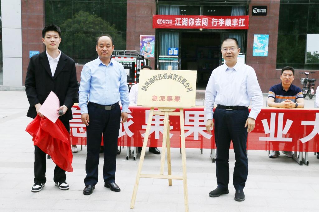 2022年5月18日,由我校电子商务专业大一学生创办的陕西锦煜佳强商贸有限公司在商贸与流通学院物流仓储实训中心广场开业,校党委书记惠朝阳、副校长梅创社、商贸与流通学院领导班子和西部创新创业研究院、校团委等职能部门负责人到场参加开业仪式。