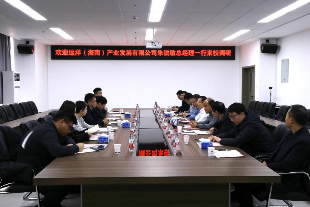 11月19日上午,远洋(海南)产业发展有限公司总经理朱锐敏一行莅临我校,开展调研交流活动。学校党委书记惠朝阳、副校长梅创社热情接待来宾,教务处、经开校区综合办公室、校企合作处,以及商贸与流通学院、信息工程学院、汽车工程学院等相关部门负责人参与此次交流。