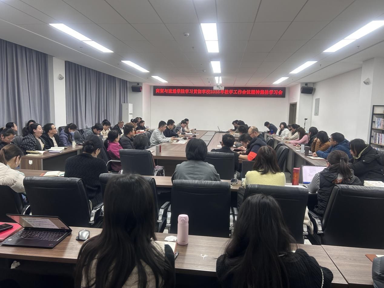 为精准把握职业本科教育发展方向,凝聚全校育人共识,12月15日,商贸与流通学院组织全体教职工召开专题学习会,集体学习学校2025年度教学工作会议精神。会议由教学办公室主任赵彧主持,学院党总支副书记蒋鹏、副院长杨涛分别就会议核心精神进行领学解读,为商贸学院开启职业本科教育新征程筑牢思想根基。