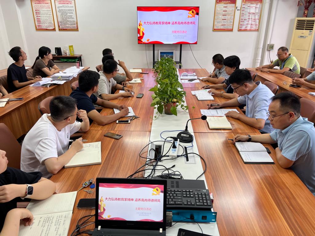 为进一步加强师德师风建设,全面提升教师师德素养,践行立德树人初心使命,弘扬新时代高校教师道德风尚。9月9日下午,汽车工程学院党总支组织开展了“大力弘扬教育家精神、涵养高尚师德师风”主题党日活动,活动由汽车工程学院党总支书记高亚宁主持,全体教师参加。
