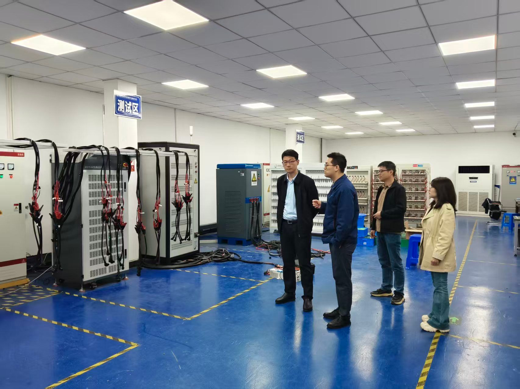 深入电池包装配车间,考察了自动化装配工艺、质量检测流程与设备运行管理情况。双方围绕电池包轻量化设计、热管理优化、BMS协同控制等关键技术展开交流,并就共同研发测试、申报科研项目初步合作共识。随后,转至计量检测中心参观交流。该检测中心主要可实现机械强度试验、气候环境试验、耐久性试验等项目的检测。双方重点探讨了在动力电池检测认证、寿命预测等领域的合作模式。希望依托双方优势,在技术研发、标准制定、人才共育等方面形成常态化项目合作机制,推动成果转化与产业化应用。