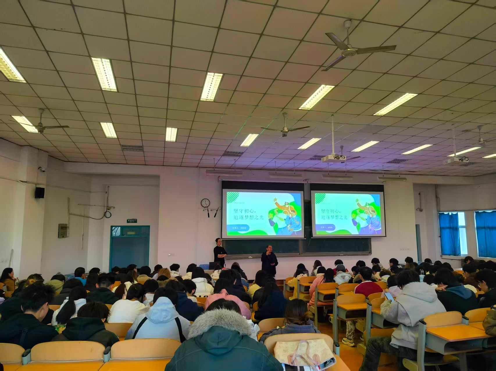 首先,马俊主任对优秀校友刘徐妹的基本情况做了简单介绍,并对其返校之行表示热烈欢迎。活动伊始,优秀校友刘徐妹“以坚守初心,追逐梦想之光”为主题,结合职业经历与感悟,分享从校园到企业的适应历程与工作心得。强调了专业知识积累与终身学习的重要性。并从“坚守初心”、“保持善良”、“学会担当”、“持续学习”四个维度分享了自己的成长感悟,并教会了同学们提升工作技能、应对职业瓶颈的有效方法。与会期间,互动环节气氛热烈,同学们围绕行业趋势、求职准备、职业路径等角度踊跃提问,刘徐妹结合行业经验细致解答。现场气氛热烈、同学受益匪浅。活动最后,卢文澈书记再次感谢优秀校友刘徐妹的分享,表示学院将以此次大讲堂为契机,完善校友联络机制,丰富互动形式,传承精神火炬,开拓学子视野。
