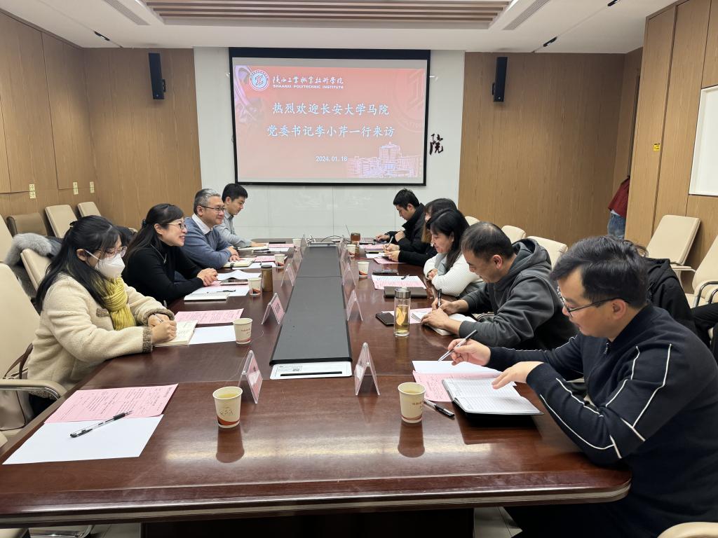 1月18日上午,长安大学马克思主义学院党委书记李小芹、副书记冯迪、团委书记杨帆等一行5人前来我校马院交流座谈。马院院长舒蕾、副院长王辉及双方部分教师参加座谈。