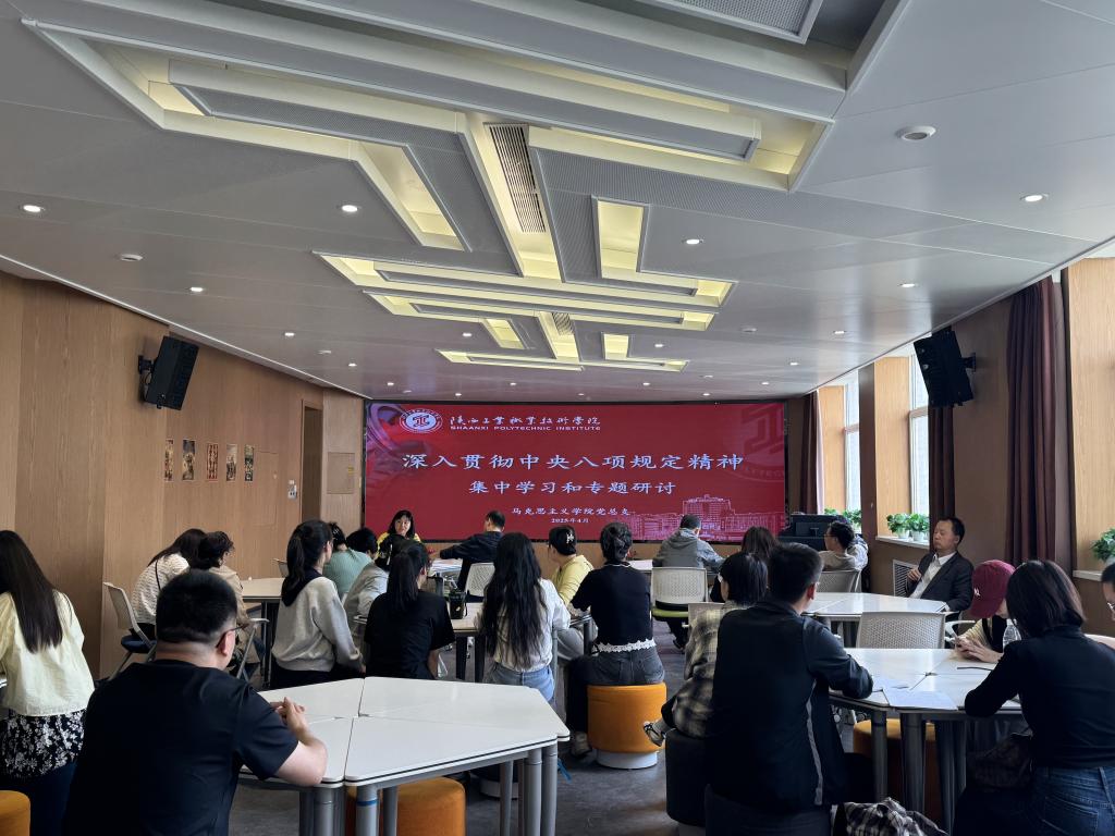 4月27日下午,马克思主义学院党总支在VR实训中心组织召开关于中央八项规定精神的集中学习和专题研讨会。此次学习旨在提升思政教师的政治素养,强化纪律意识,在教学和日常工作中以身作则,践行优良作风。