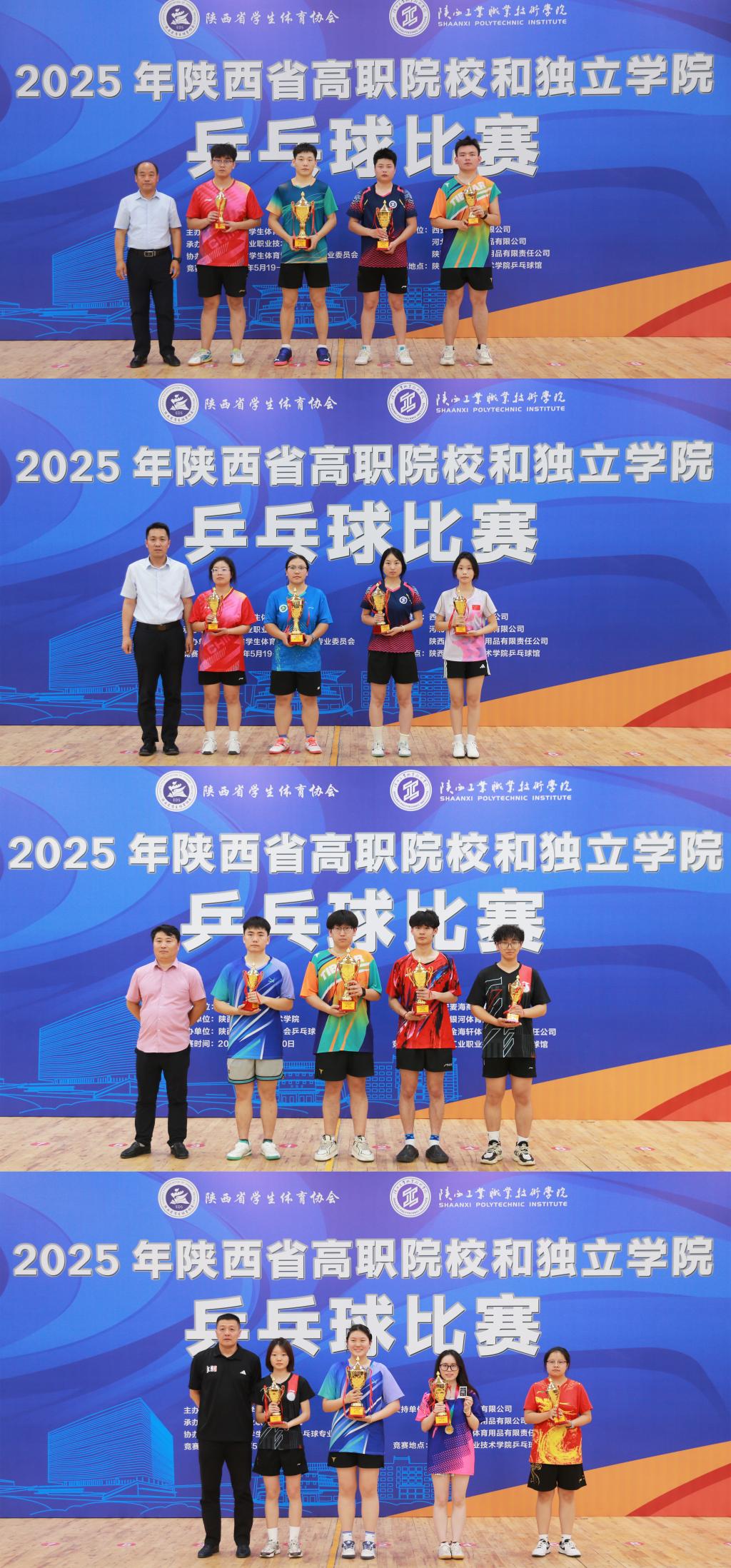 5月20日,2025年陕西省高职院校和独立学院乒乓球比赛在我校渭城校区乒乓球馆圆满落下帷幕。副校长梅创社、陕西省学生体育协会副秘书长程磊、竞赛部部长石赛佳、西安东方乳业有限公司总经理赵志禹、麦海商贸有限公司经理杨海峰参加了闭幕式。