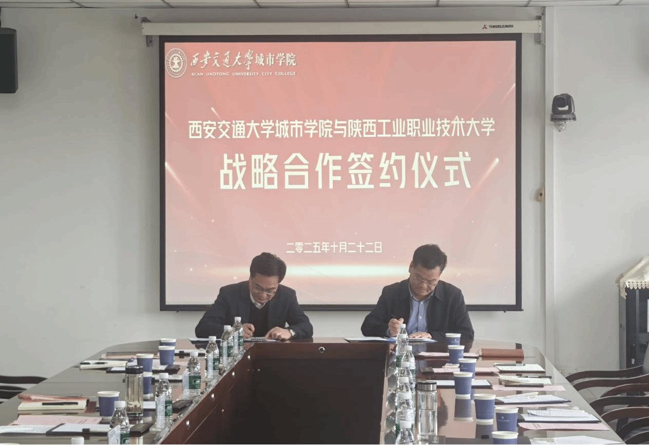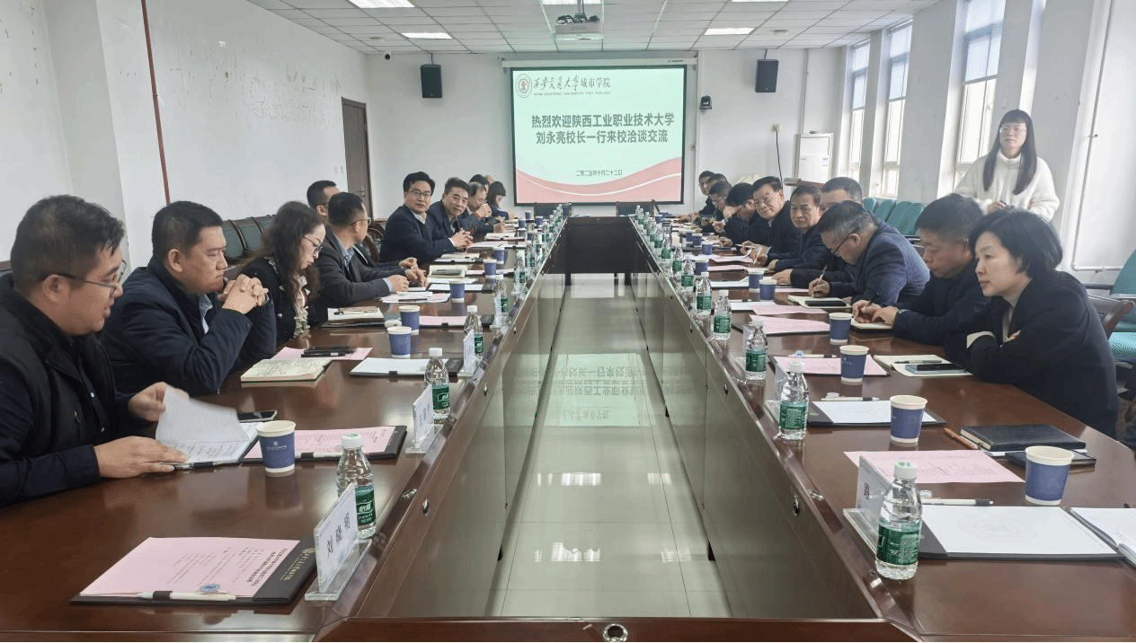 10月22日上午,校长刘永亮、党委副书记贺天柱,相关部门和二级学院一行14人赴西安交通大学城市学院交流座谈,并签署框架协议。此次合作旨在深化产教融合,推动应用型本科教育与职业教育的协同创新,为区域人才培养注入新动能。会议由交大城市学院副校长朱旭主持,校长王永泉教授和相关部门参加座谈。