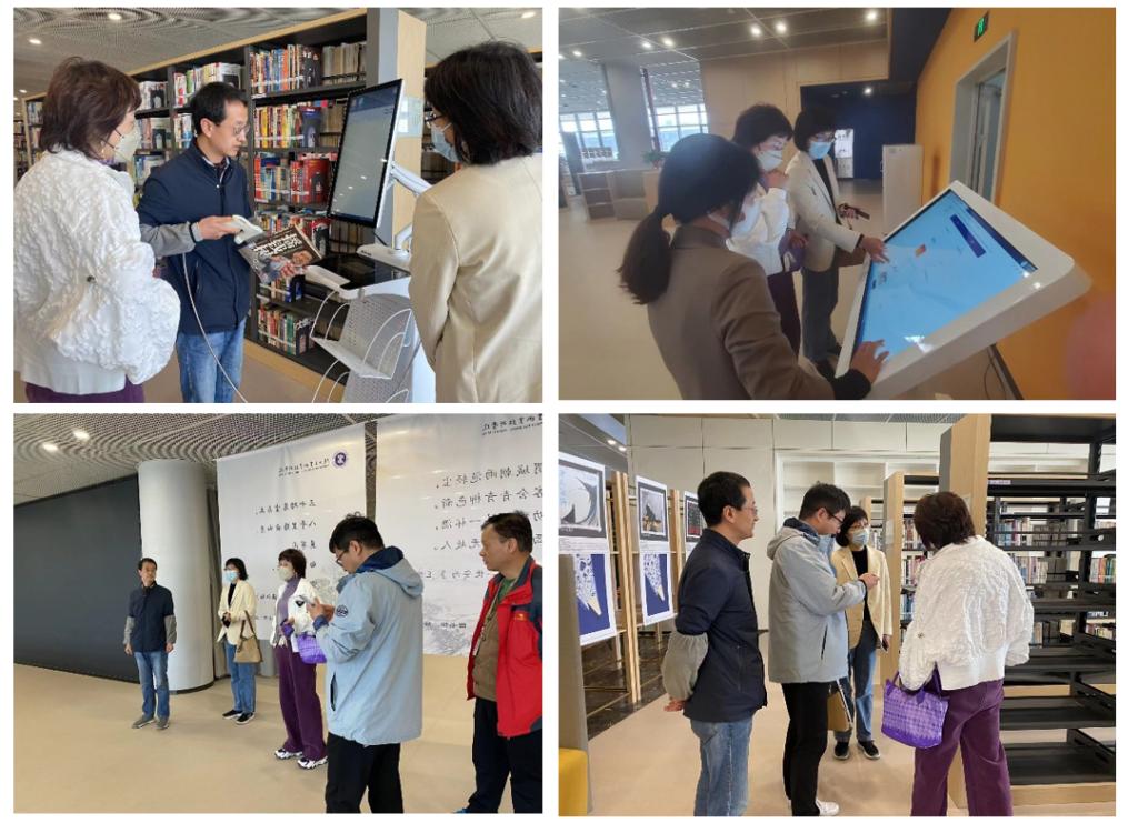 双方围绕着图书馆自助借还系统、虚拟图书馆建设、统一资源门户建设、座位预约功能等话题展开了深入的交流和讨论,并对我们新馆搬迁过程当中遇到的一些问题进行了沟通交流。期间,信息咨询部段辉老师带领两位老师参观了我校图书馆书库、自习区等开放区域,祝嘉欢老师就虚拟图书馆、自助借还等设备进行了演示,流通部曹利军老师为两位老师介绍并演示了如何使用盘点车进行图书上架、盘点等。